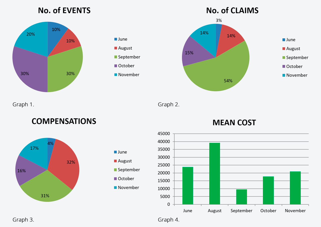 | MONTH | No. of EVENTS | No. of CLAIMS | COMPENSATIONS | MEAN COST |