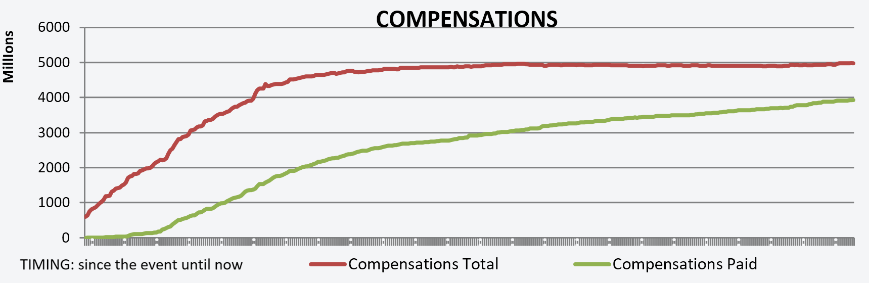- The compensations are the total sums paid out and set aside as provisions pending settlement and payment.